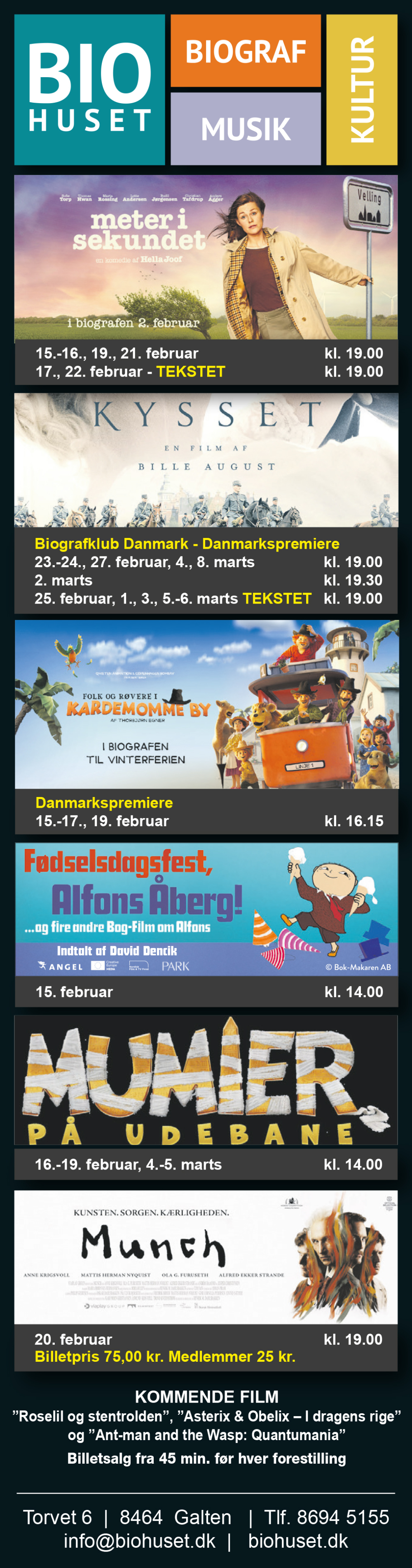 Ellers viser Bio Huset p.t. “Meter i sekundet” –filmatiseringen af Stine Pilgaards bestseller af samme navn.