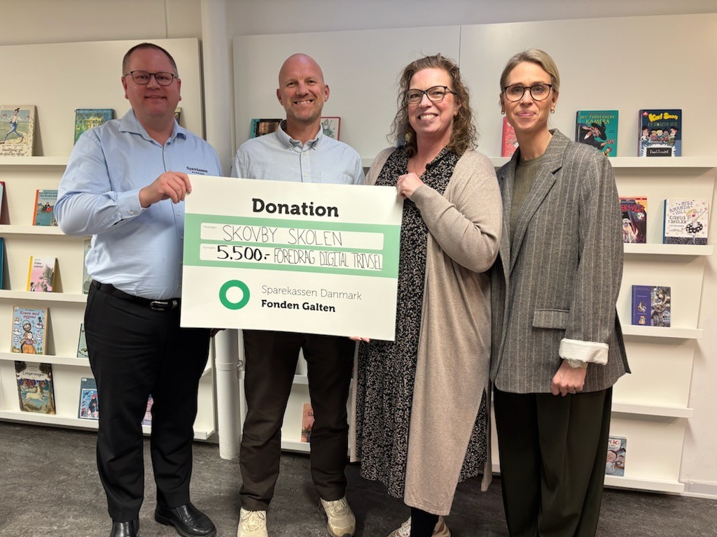 Sparekassen Danmark Fonden Galten støtter foredrag på Skovbyskolen om digital trivsel.