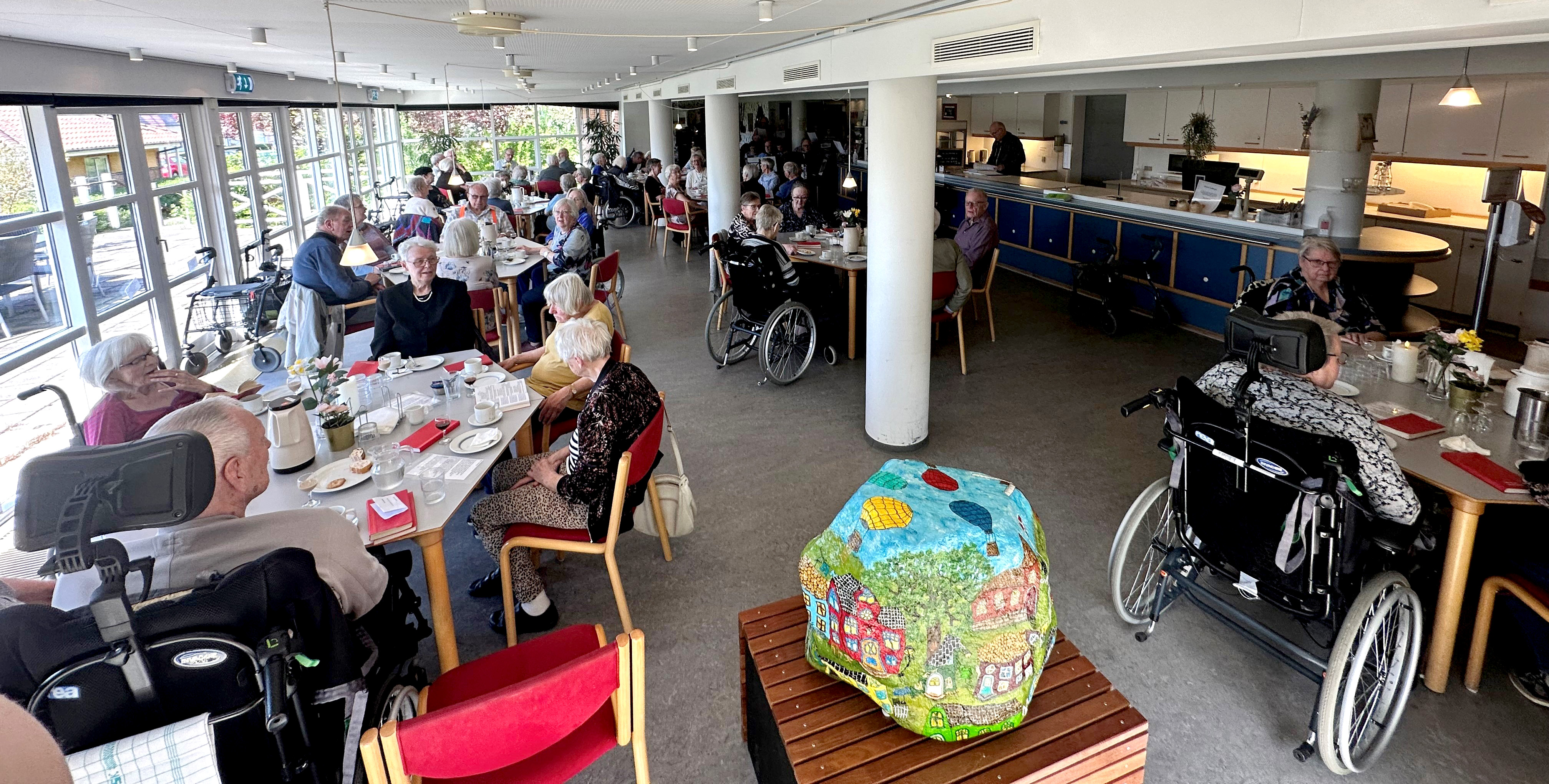 På den måde kan beboerne dufte og smage maden, og dem, der har lyst, kan deltage i små opgaver i madlavningen. Målet er en mere hjemlig atmosfære og bedre appetit.