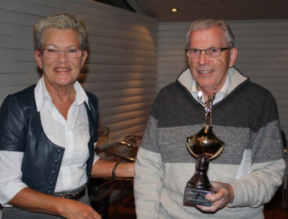 Formand Barbara Kock overrækker Jørgen Andersen Jubilæumspokalen.