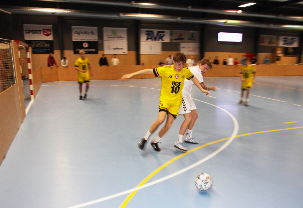 Et glimt fra en af de indledende kampe ved julefodbolden.