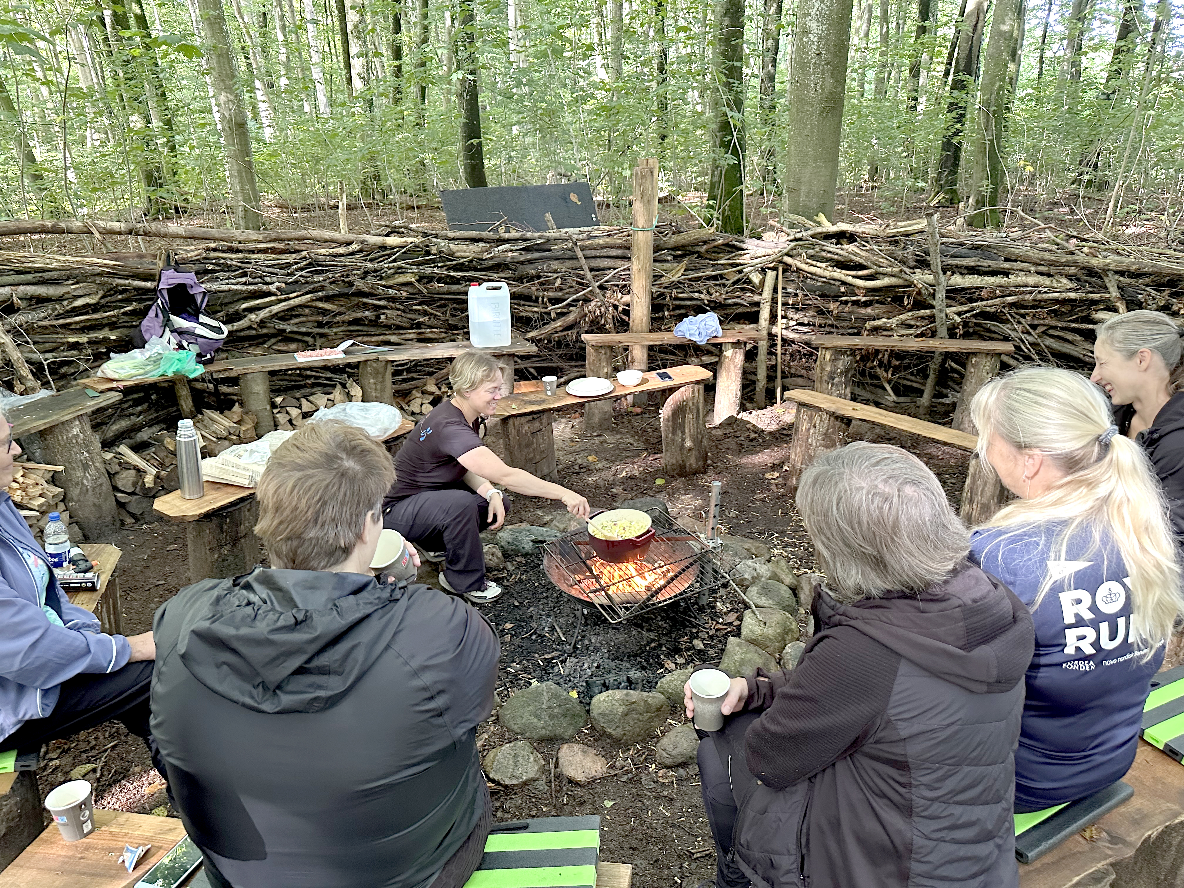 Den første onsdag i måneden laver holdet bålmad og nyder varmen fra flammerne.