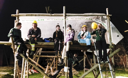 Mandag klokken 21.55 (2. påskedag) modtog politiet anmeldelse om et mistænkeligt forhold idet to personer var set på taget ved Gyvelhøjskolen i Galten.