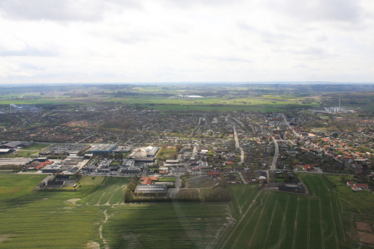 Lørdag d. 27. april var Folkebladets fotograf med på en hurtig helikoptertur rundt om Galten-Skovby. Vi deler billederne med læserne som måske kan finde nye detaljer og sammenhænge som ellers ikke bemærker, når man bevæger sig rundt i "jordhøjde".