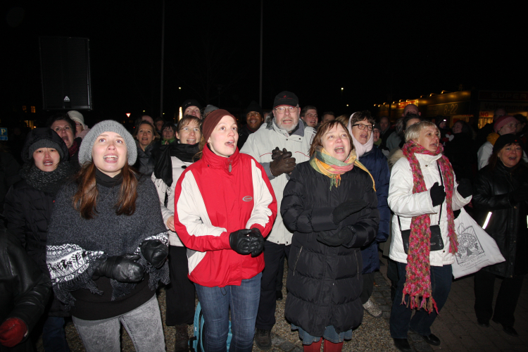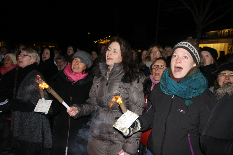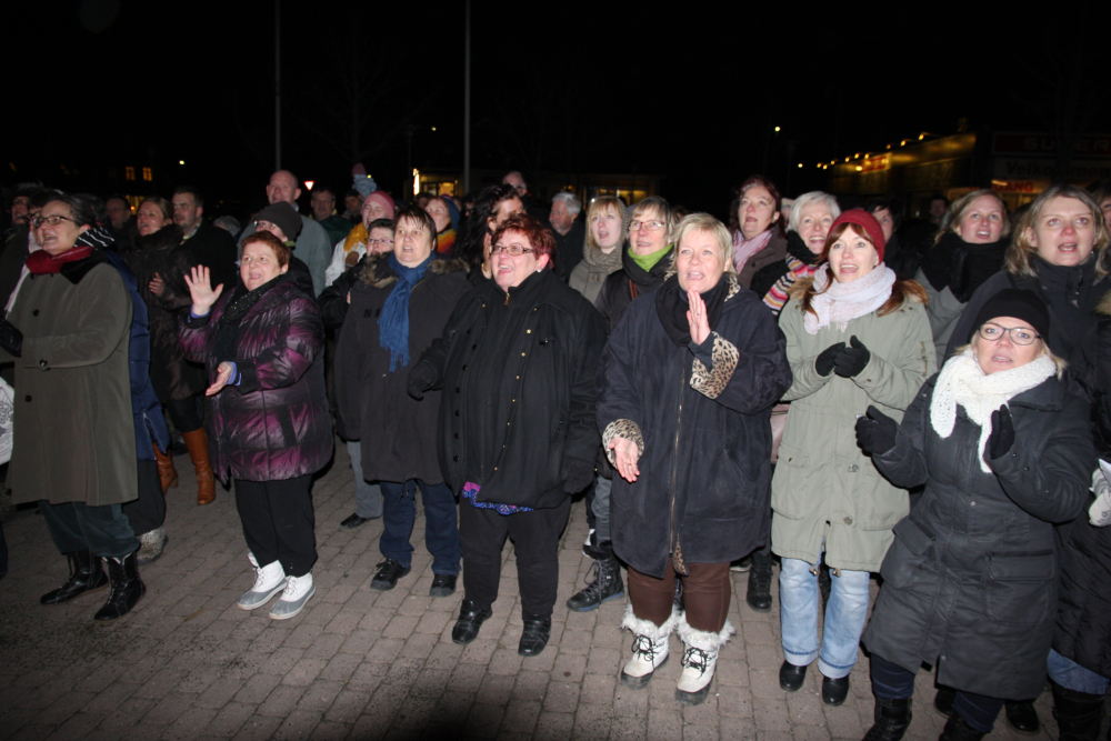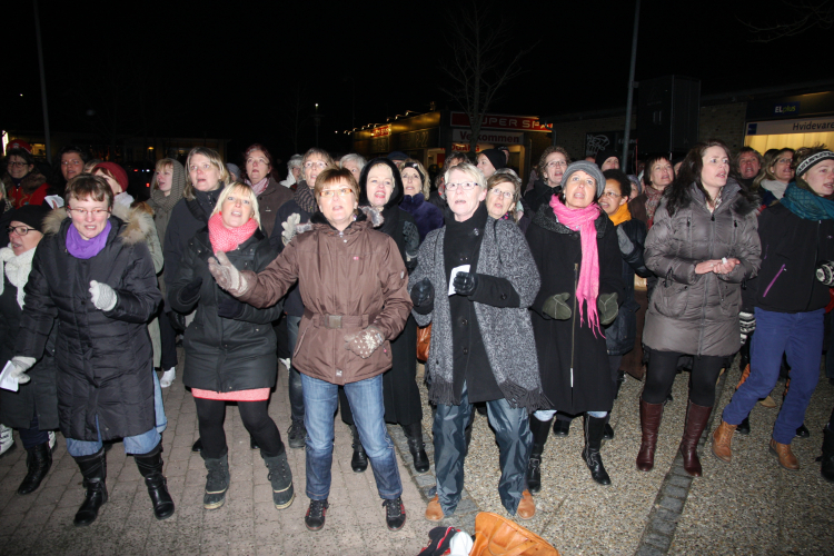 150 sangere fra Århus Gospel Singers trak 300 publikummer til »Lysvæld« på Torvet i Galten tirsdag den 6. marts 2012