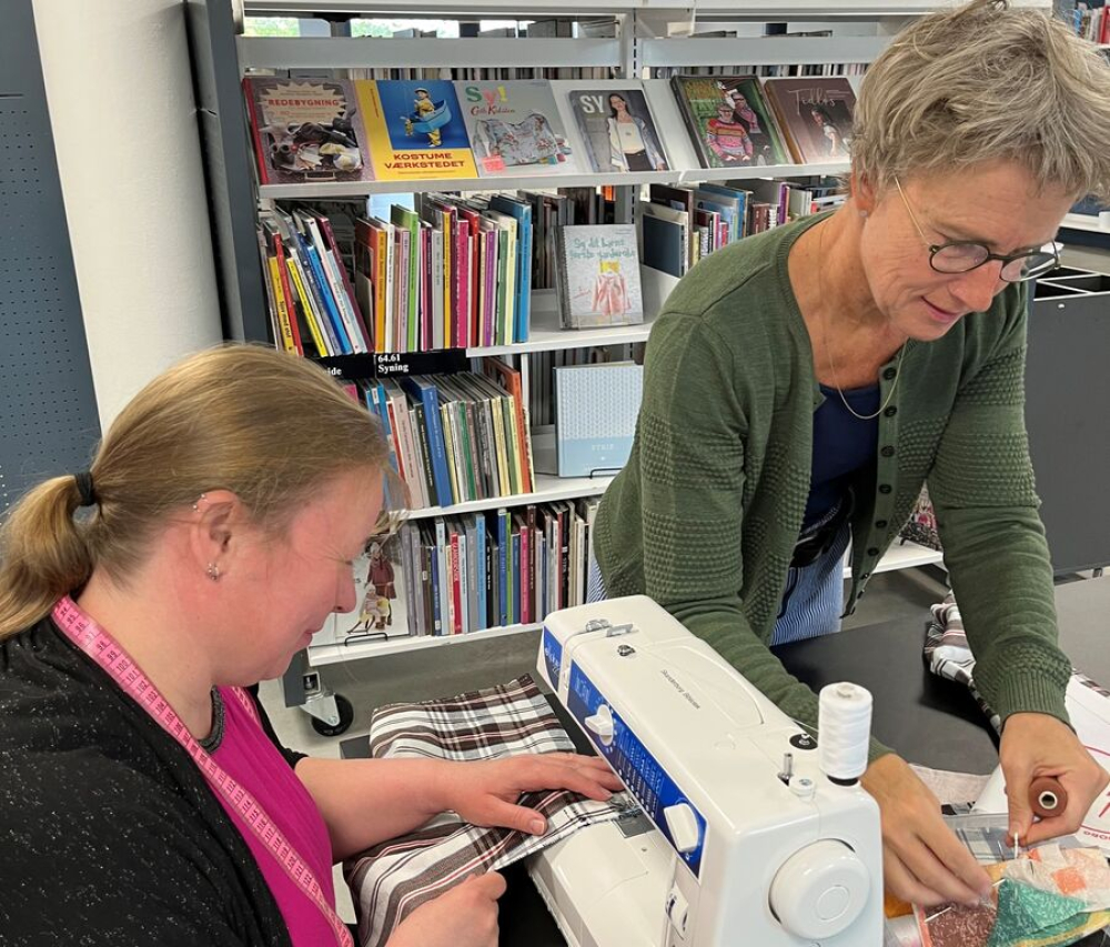Biblioteket har lidt strikkepinde, hæklenåle, garn samt et par symaskiner, der kan benyttes. Man er også velkommen til at medbringe sine egne ting, hvis du hellere vil benytte dem.