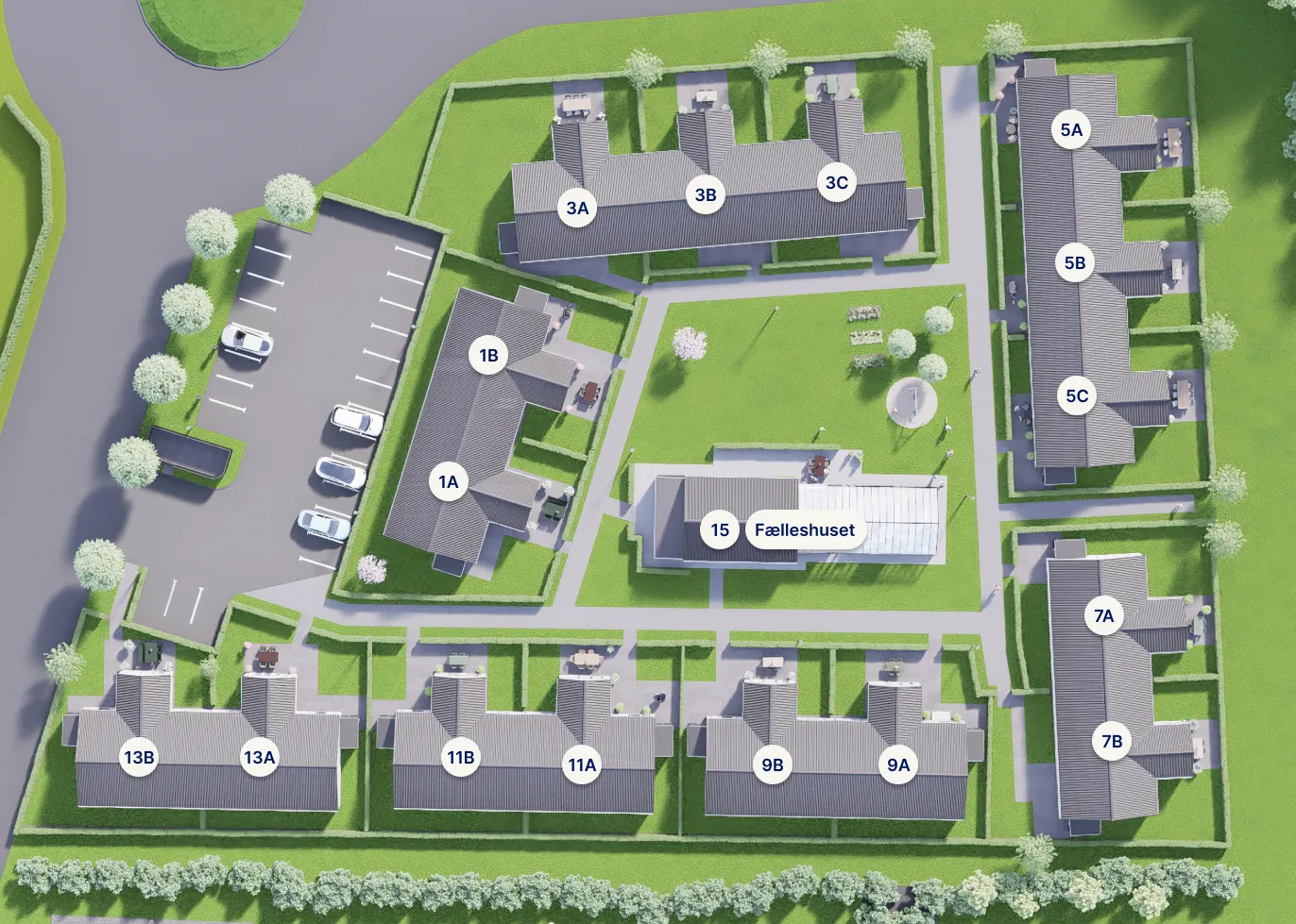 »Vi taler ikke om et kollektiv, men et boligområde hvor man ikke er gemt bag en høj hæk, men i åbne omgivelser, der fremmer interaktion og samhørighed. Her er fællesskabet i centrum. Seniorer kan nyde godt af børnefamiliers livlighed, mens singler finder tryghed og fællesskab i at være en del af noget større. For at skabe et sikkert og roligt miljø hvor børnene kan lege trygt, er området bilfrit, med parkeringspladser placeret i udkanten. Fælleshuset er hjertet af området, med orangeri, køkken og gæsteværelse,« forklarer Nordstrand idet man tilføjer: