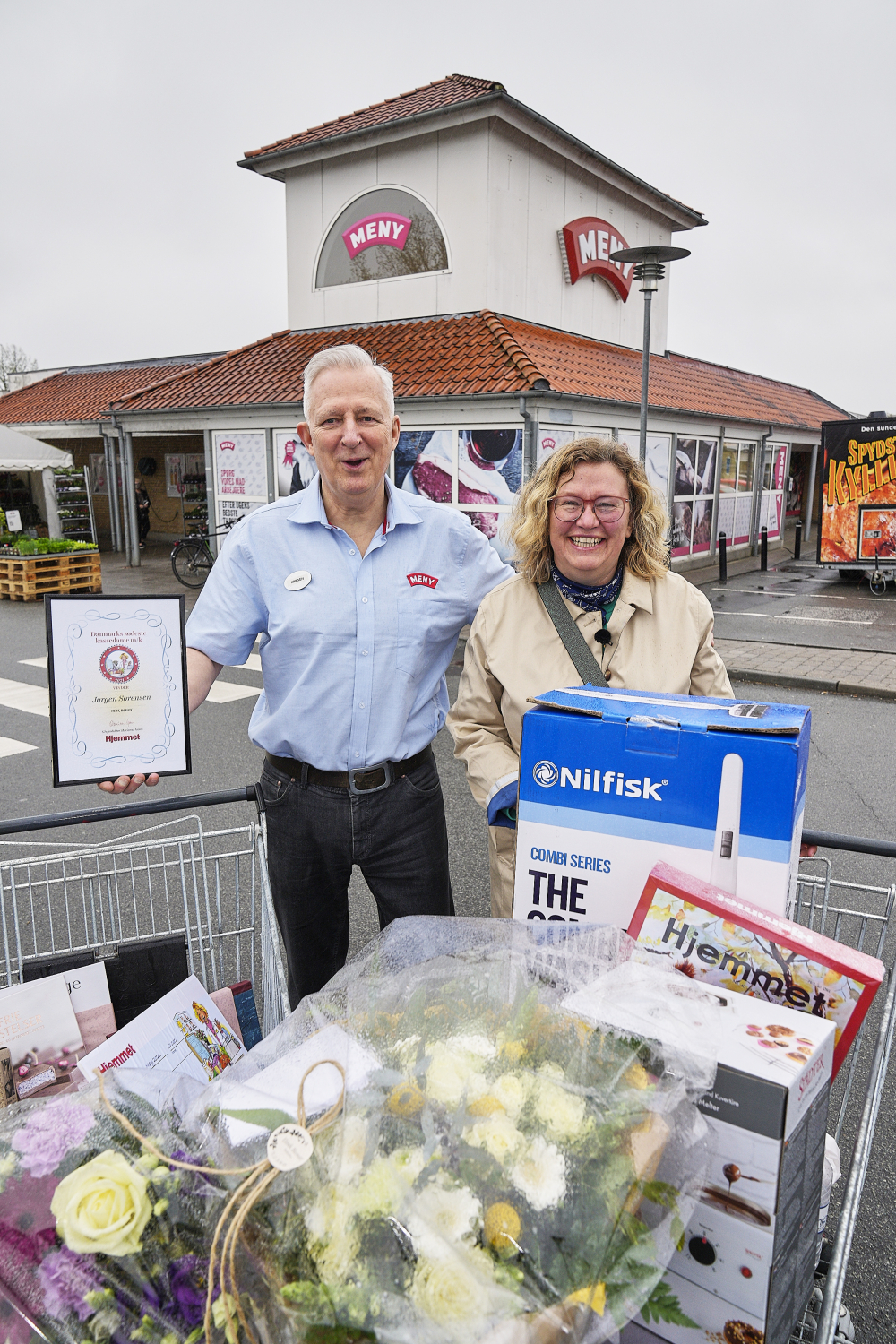 Mange føler sig godt betjent af Jørgen Sørensen ved kassen hos Meny i Harlev. Så mange at han i sidste uge blev hædret som vinder af Danmarks sødeste kassedame m/k – en konkurrence som for ottende gang har været arrangeret af ugebladet Hjemmet.