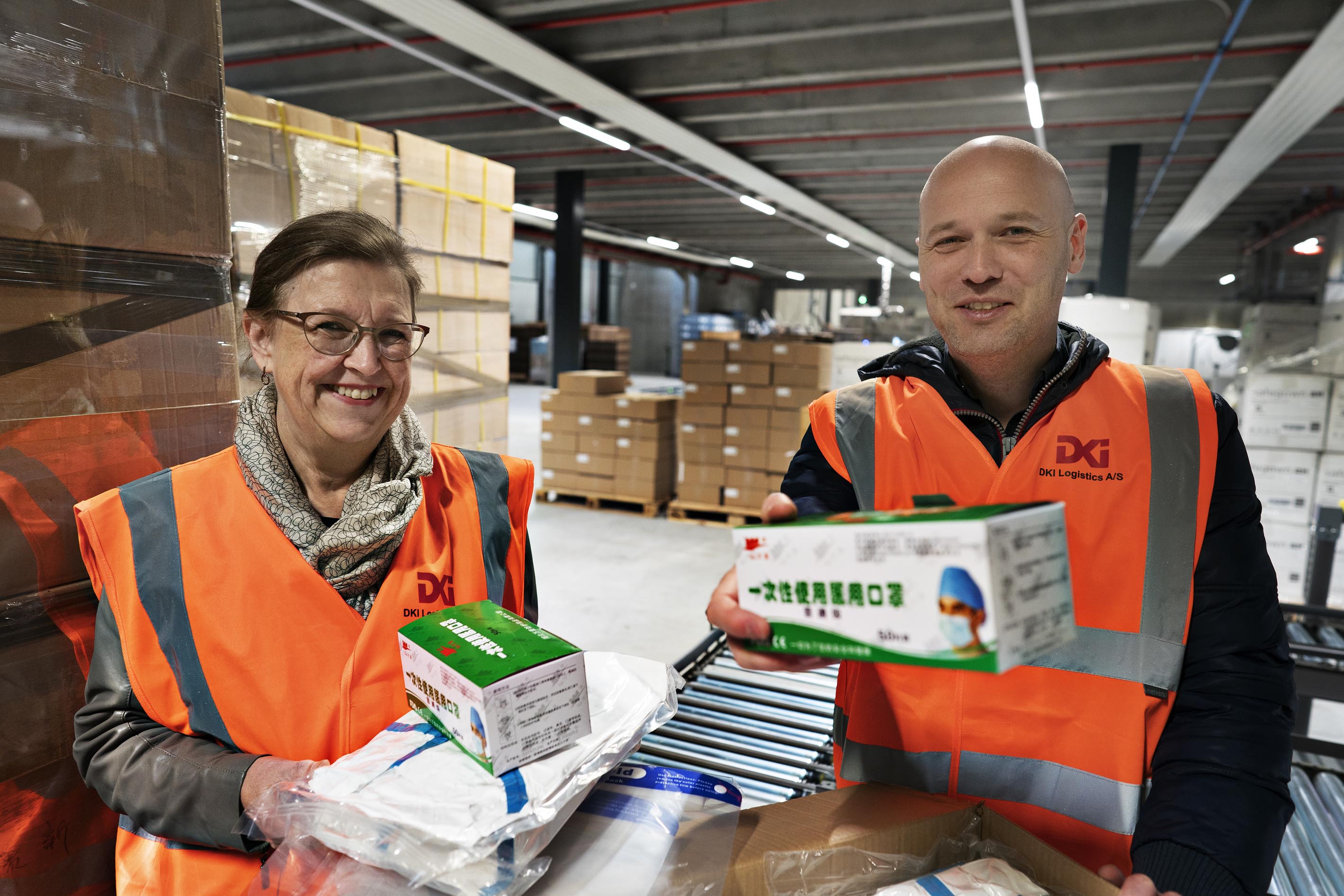 Region Midtjyllands centrale lager har nu modtaget de donerede værnemidler, der skal fordeles til regioner og kommuner i hele landet