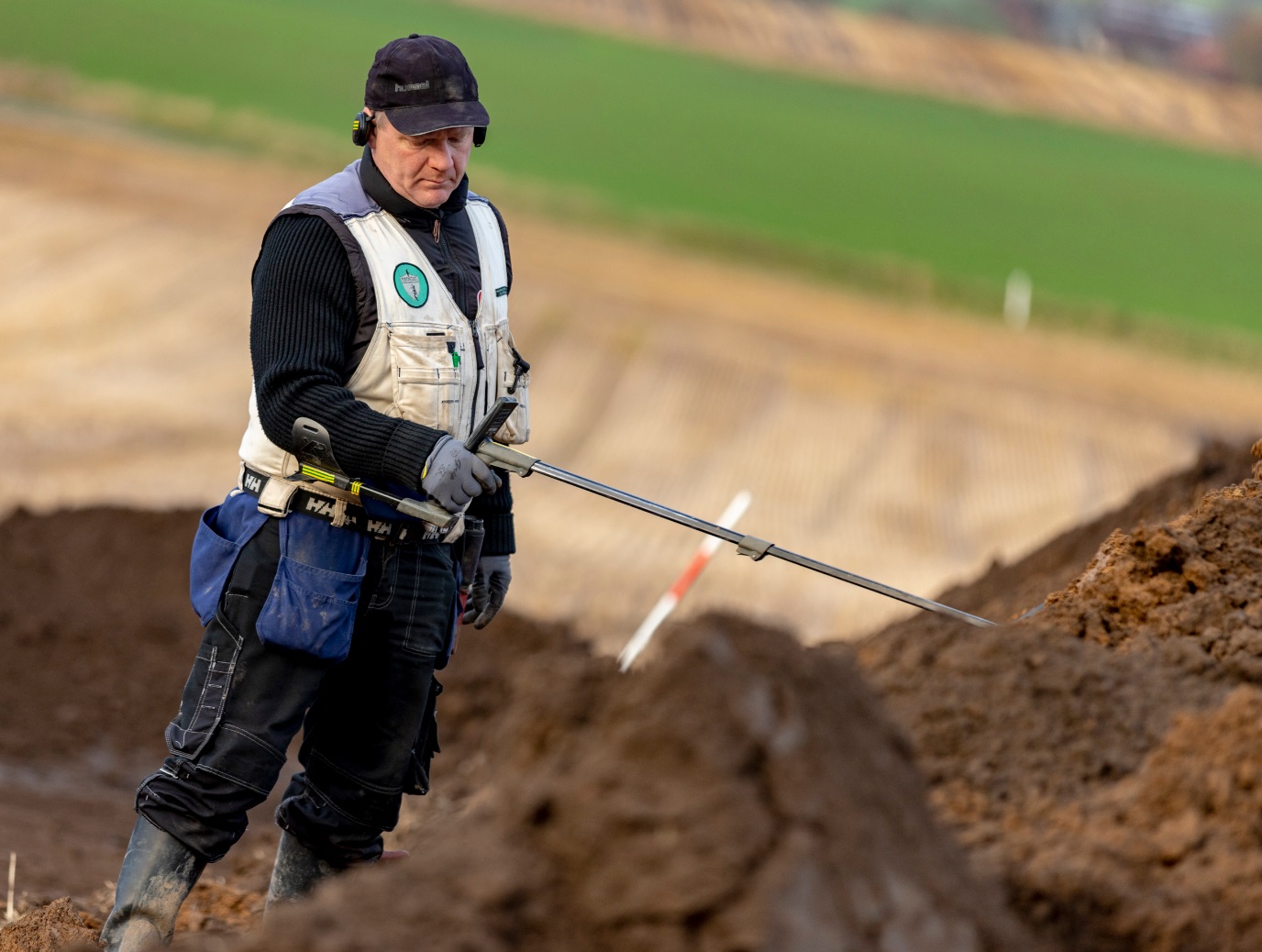 »Det må vi som amatørarkæologer og detektorførere ikke lave. Vi må kun grave i pløjelaget, det vil sige cirka 20-25 cm,« forklarer Michael.