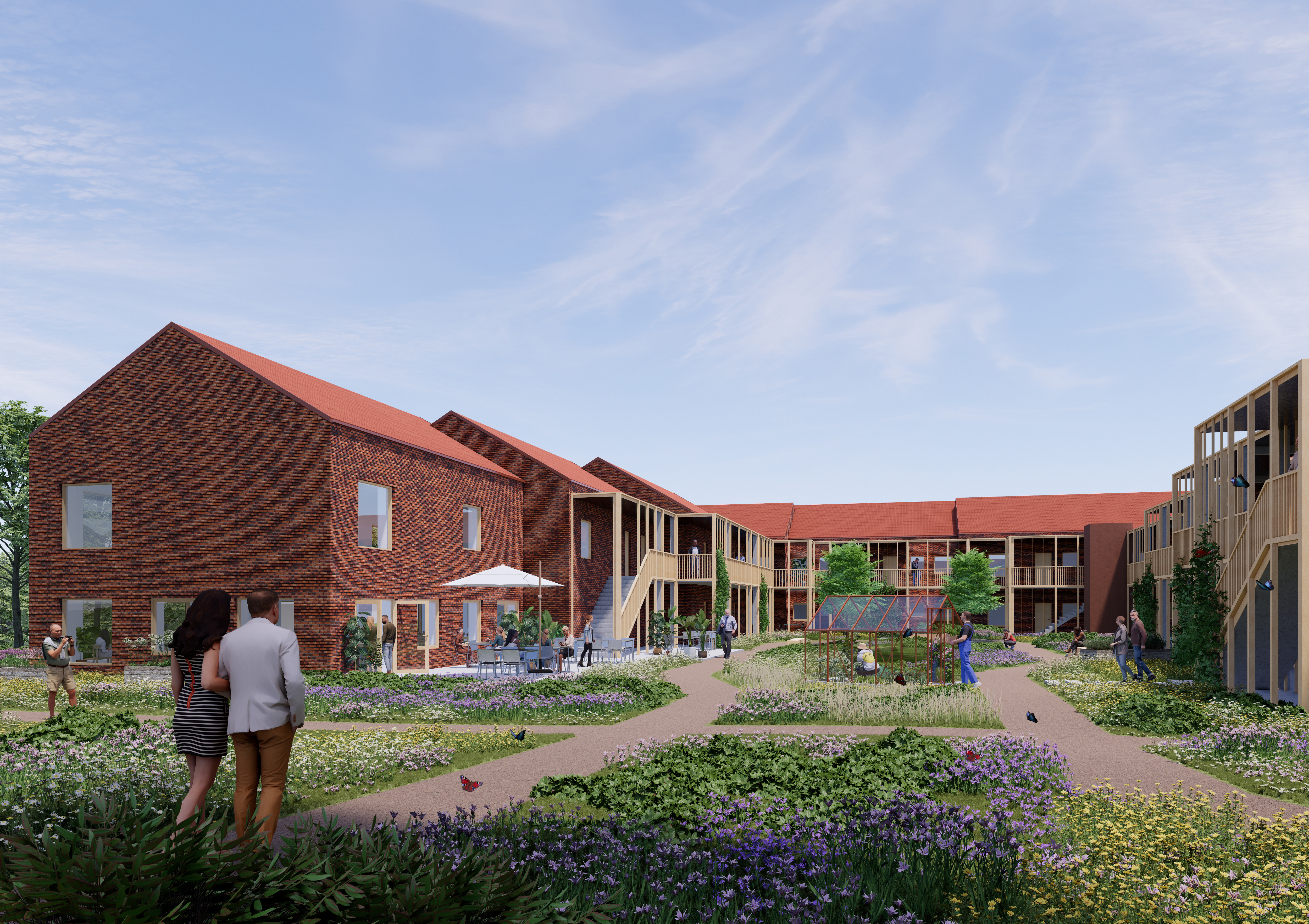 De kommende +55 boliger er for dem, der ønsker et aktivt seniorliv. Derfor er fællesskab også omdrejningspunktet i det nye byggeri, hvor bebyggelsen og den indre fælles have udvikles med særligt fokus på det gode naboskab og de nære relationer.