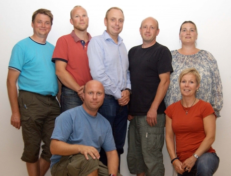 Det nye byfest-udvalg som støber kuglerne til Galten Byfest 2013. Bagest fra venstre ses Jan Hygum, Carsten Bach, Søren Riis, Allan og Tanja Kulas. Forrest Kaspar Gyllensten og Helen Kristiansen.