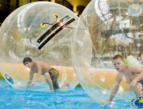 - Vandboldene er nogle store oppustelige bolde, der er store nok til at rumme et voksent menneske og på den måde bliver det muligt for alle at prøve at gå på vandet.