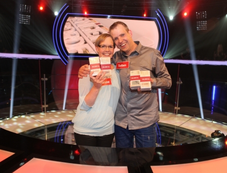 Susanne og Torben Mikkelsen fra Galten var meget glade, da de klarede sig igennem TV2's gameshow "Pengene på bordet" med et udbytte på 200.000 kroner. Foto: Lærke Rasmussen