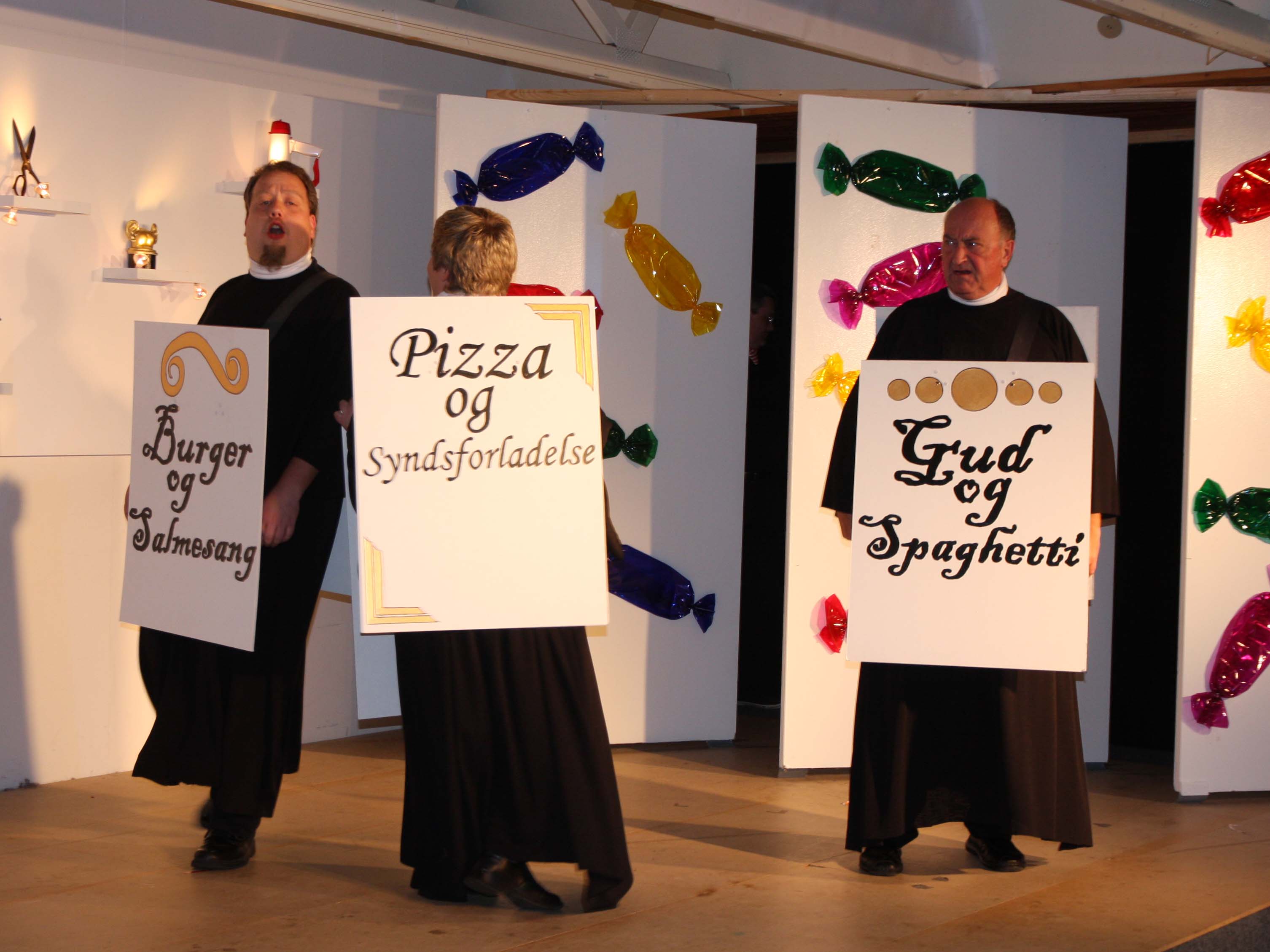 Den omsiggribende trend med at folkekirken knytter menigheden til sig gennem arrangementer med spisning fik en spøgefuld kommentar med sig i nummeret »Oblater og andre snacks«.