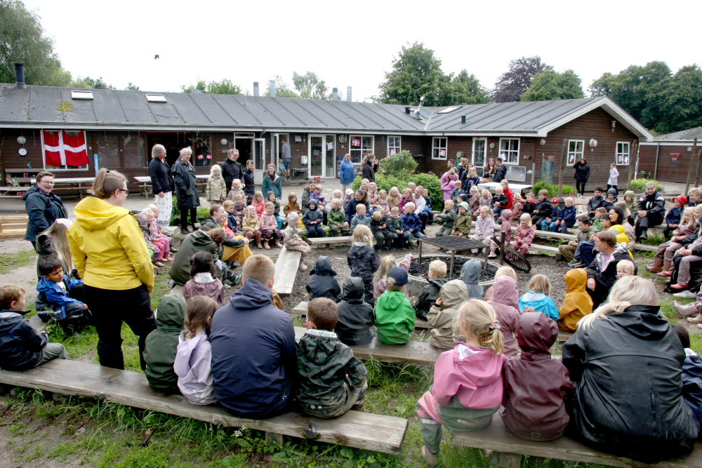 Klokken 14 samledes alle børn, medarbejdere og en del forældre på legepladsen.