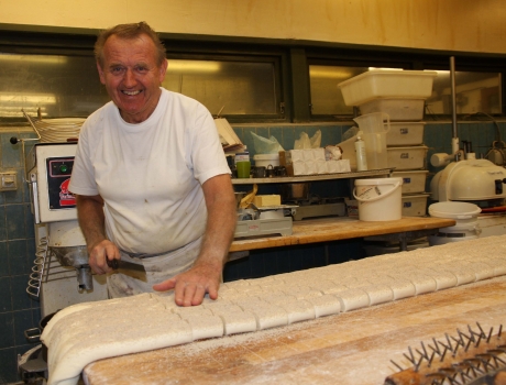 Charles Christensen i sving i bageriet. Skønt karrieren som bagermester strækker sig 46 år tilbage og han i år runder de 70 år, så har han ingen planer om at trække sig tilbage. På den anden side har Charles også noget at leve op til. Hans far var aktiv i bageriet til han havde rundet de 90 år.