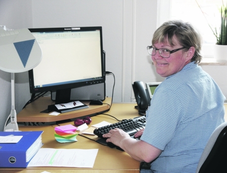 Helle Schram er uddannet køkkenleder og har været på Lokalcenter Tjørnehaven i 23 år. Hendes glæde og gode humør smitter, og alle, der går forbi hende på gangen, smiler og siger hej.