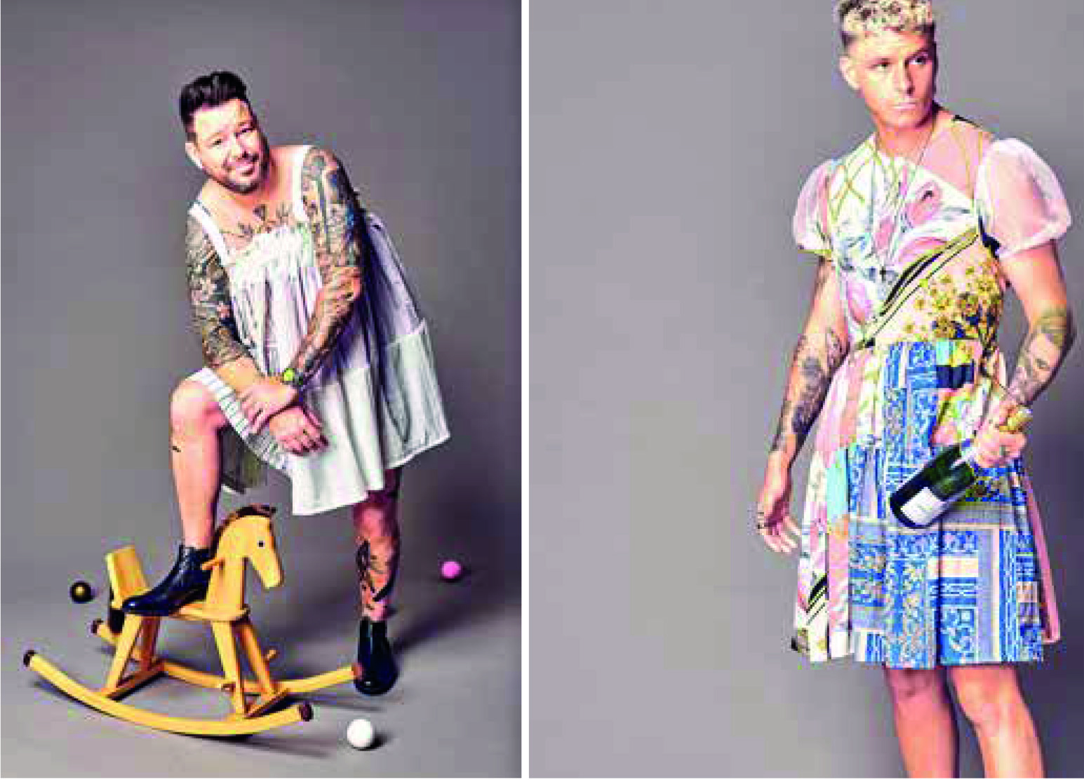 Kristian Amdisen, Skovby (tv.) og Jeppe Risager, vinder af prisen for Årets Mandlige Realitydeltager ved Reality Awards 2021, var blandt modellerne som stillede sig til rådighed som modeller for projektet 'En kjole er bare en kjole'. Foto: Thomas Dahl Jepsen