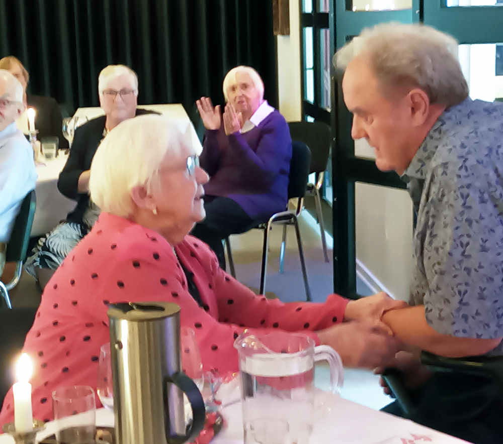 De 40 tilmeldte deltagere havde nok forudset at de skulle have noget lækkert at spise, men næppe, at den af arrangørerne varslede overraskelse, ville være en times show med far og søn, Bjørn og Johnny Hansen.