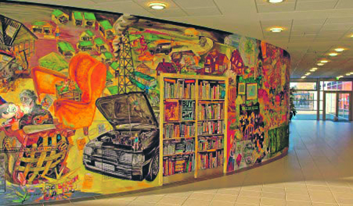 Apostle i parcelhuse. Jesus født i en kondisko. Kong Herodes med en Webergrill. Kain og Abel på traktor. Det er nogle af de ting man vil kunne se, når Esbjerg-evangeliet, et 140 m2 stort vægmaleri af Erik Hagen kommer til Galten i næste uge.