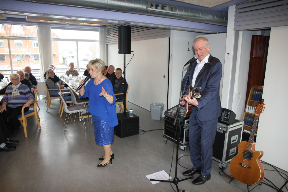 »Og det er ikke færdig endnu. Vi skal af sted igen til efteråret,« tilføjede Keld inden duoen sang nogle af de elskede Four Jacks-numre: Mandalay, Æselsangen og Når bare vi har det godt. Især Tom Dooley og Åh Marie, a ve hjem te dig fik gang i syng med-stemningen rundt ved bordene.