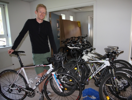 Efterskolens tidligere sløjdlokale er allerede fyldt godt op med cykler. Her skal indrettes et cykelværksted, hvor cykelliniens elever kan lære selv at reparere deres cykler. I spidsen for den nye cykellinie står Rasmus Wagner, Galten, der er uddannet DCU-træner og i øvrigt tilknyttet Galten Cykelklub.
