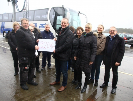 Deltagerne i en "Vej din virksomhed"-indsamlingsaktivitet i forbindelse med Galten-Skovby byidsamlingen var forleden samlet til "indvejning" på brovægten hos Danish Agro.