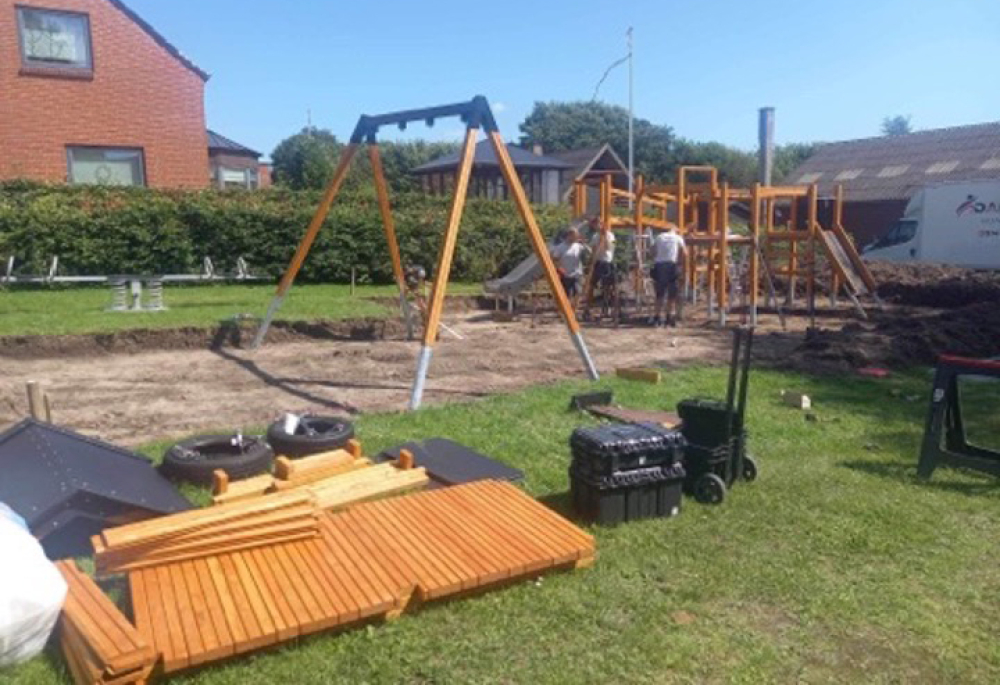Et besøg hos den lokale frisør satte skub i samarbejdet omkring etablering af en legeplads i Sjelle. Nu står legepladsen snart klar til brug.