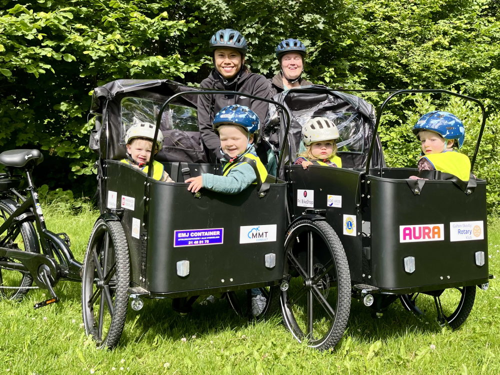 »Forældrene i Børnehuset er meget aktive, og bidrager med så meget godt ind i vores hverdag – og nu er det så igen lykkedes dem at få samlet ind til en ladcykel. En el-ladcykel, som nemt transporterer fire børn afsted ud i det blå,« fortæller Susanne Holm, daglig leder i Børnehuset Gyvelhøjen i Galten.