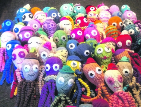Det startede med én 'Sprutte' til låns. I dag har Skejby Sygehus fået mere end 200 'Sprutter', som syv kvinder fra Herskind har hæklet. Og initiativtagerens barnebarn, Zilja er maskot.