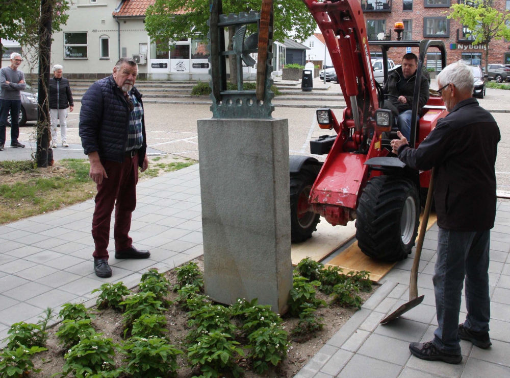 Skulptur fra tiden da Galten havde posthus, er tilbage i bybilledet, nær den oprindelige placering.