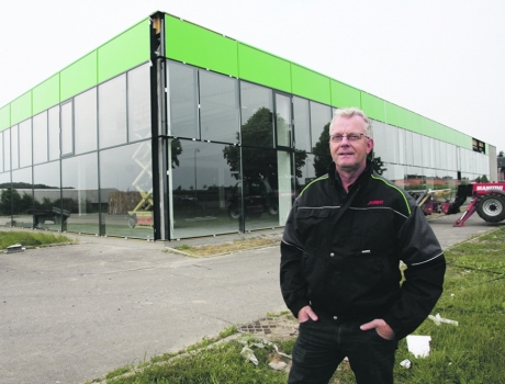 Sorring Maskinhandels nye udstillinghal er ved at tage form. Facaden på den triste grå betonbygning er forvandlet til en flot udstillingshal med glasfronter mod øst og syd. Jørgen Jensen ser frem til at tage udstillingshallen i brug i løbet af august - hvor den fyldes med Avant minilæssere, som Sorring Maskinhandel forhandler.
