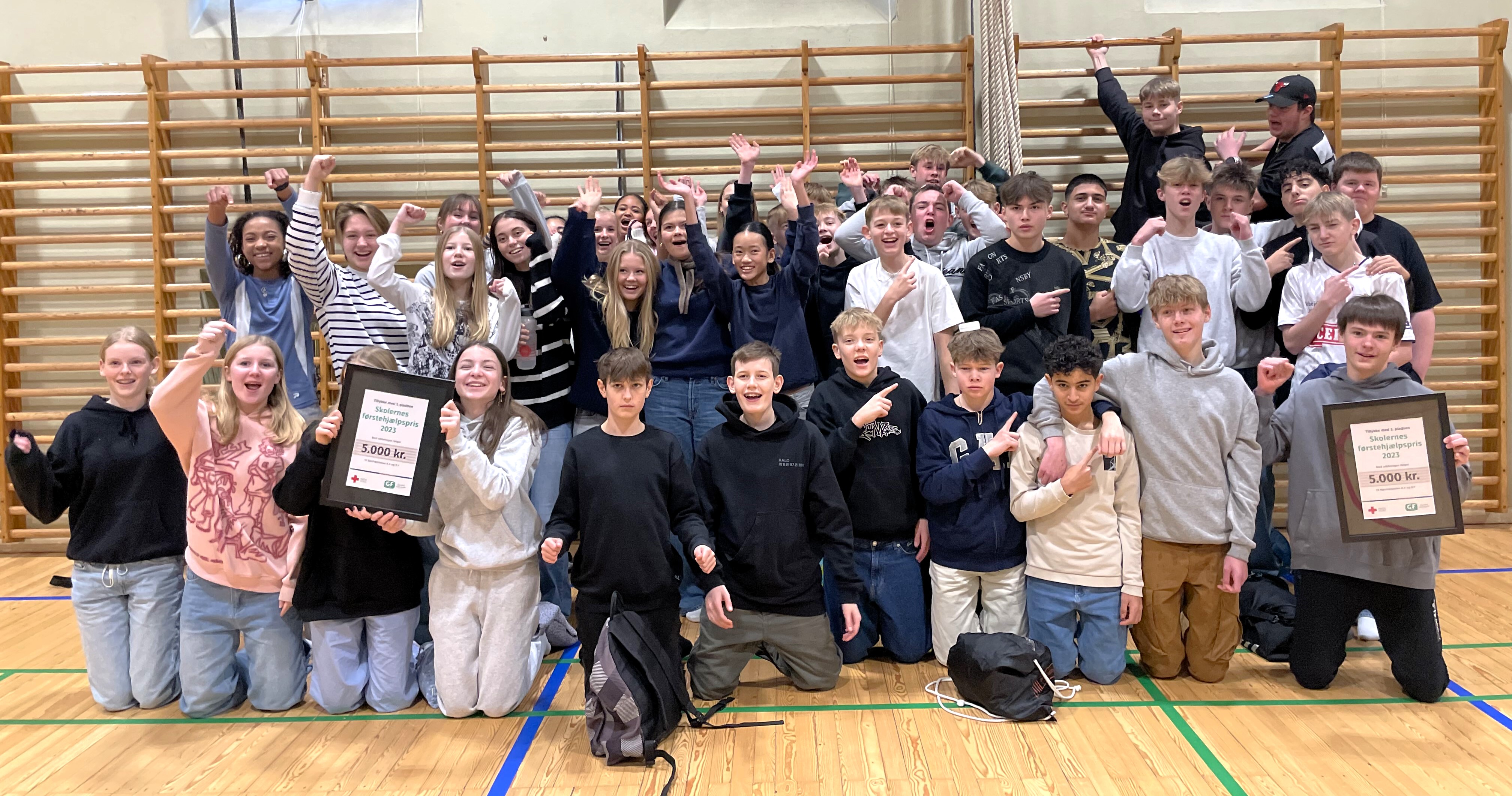 På Næshøjskolen i Harlev har eleverne sluppet kreativiteten løs for at udbrede viden om førstehjælp. Derfor scorede skolens 8. årgang tredjepladsen i Skolernes Førstehjælpspris og 5.000 kroner til eleverne.