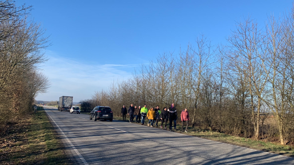 Mødet startede med en gåtur langs Låsbyvej for på egen krop at mærke, hvad det vil sige at færdes som blød trafikant på Låsbyvej.