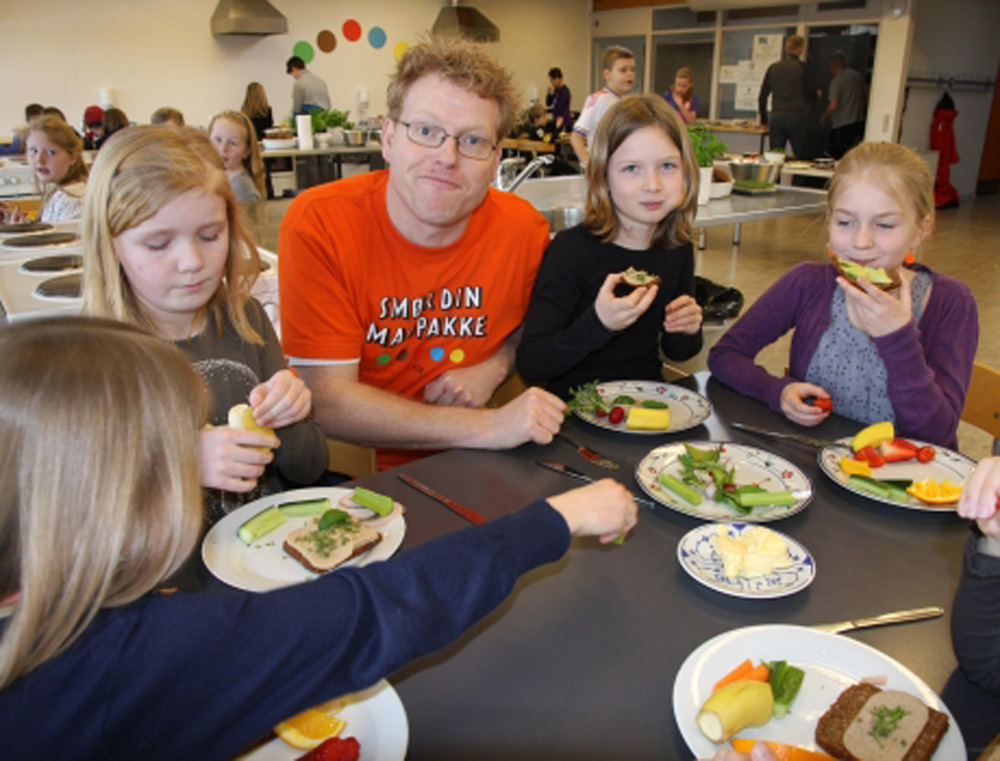 Leverpostejmaden og den flade med spegepølse fik sundere konkurrenter, da Sebastian Klein mandag besøgte elever på Gyvelhøjskolen og Skovbyskolen og udfordrede elevernes madpakkevaner.