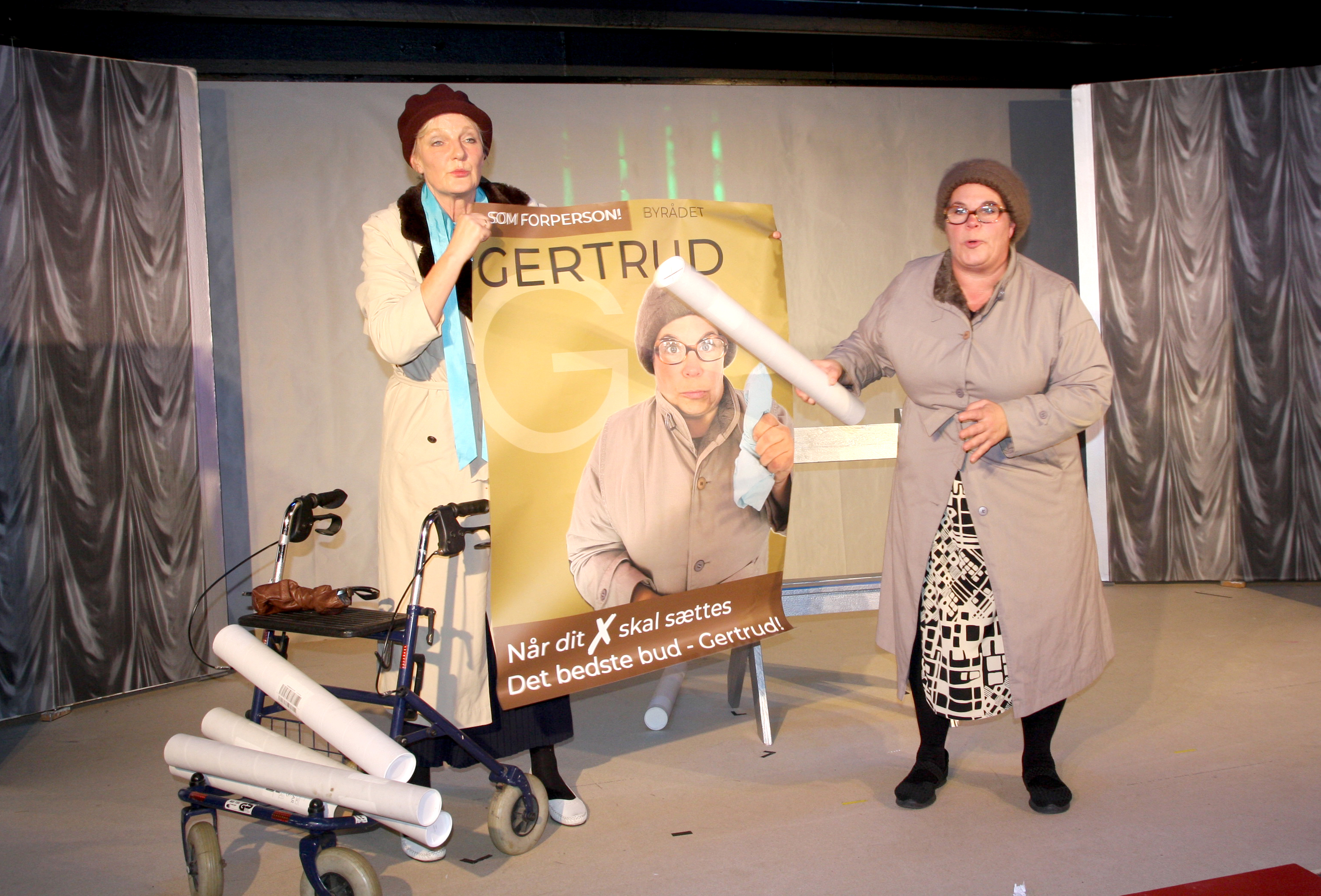 Gennem de fleste af revyens 25 udgaver har de modne "lokalkommentatorer" Gertrud og Erna været gennemgående og elskede af publikum. Således også i år, hvor de to damer skuede tilbage på deres mangeårige parløb, men også fremad idet Gertrud afslørede, at hun skam opstiller ved det forestående kommunalvalg.