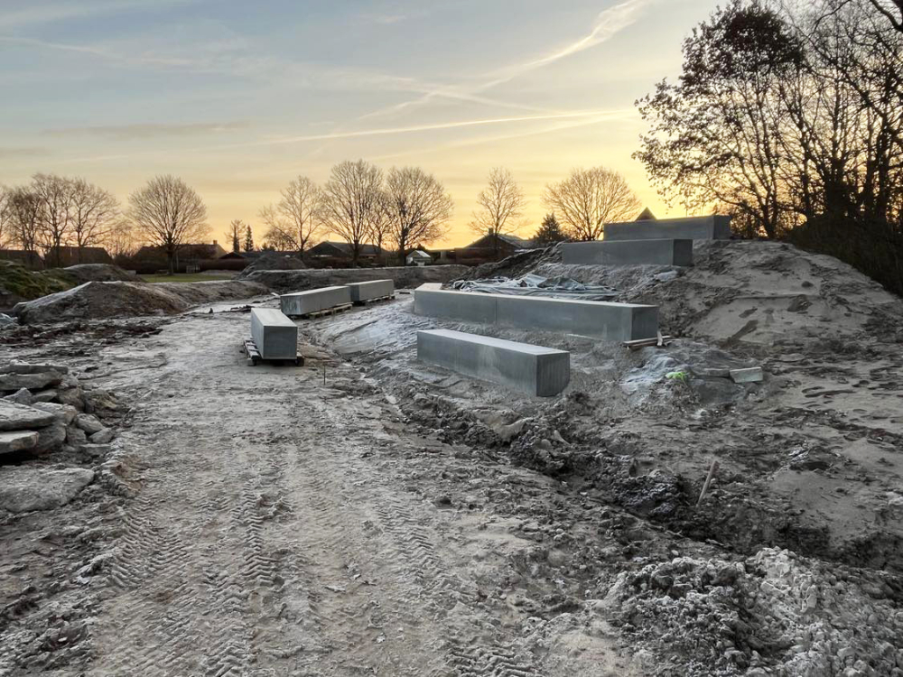 »Et af de sidste elementer i projektet er et motorikforløb med 225 pæle/træstubbe – til leg, balance, pauser og som naturlig del af områdets æstetik. Oprindeligt skulle frivillige sætte stubbene, men uforudsete forsinkelser i anlægsarbejdet gør, at vi nu har brug for professionel hjælp for at nå i mål uden at forsinke projektet yderligere,« fortæller Marie Hulgaard.