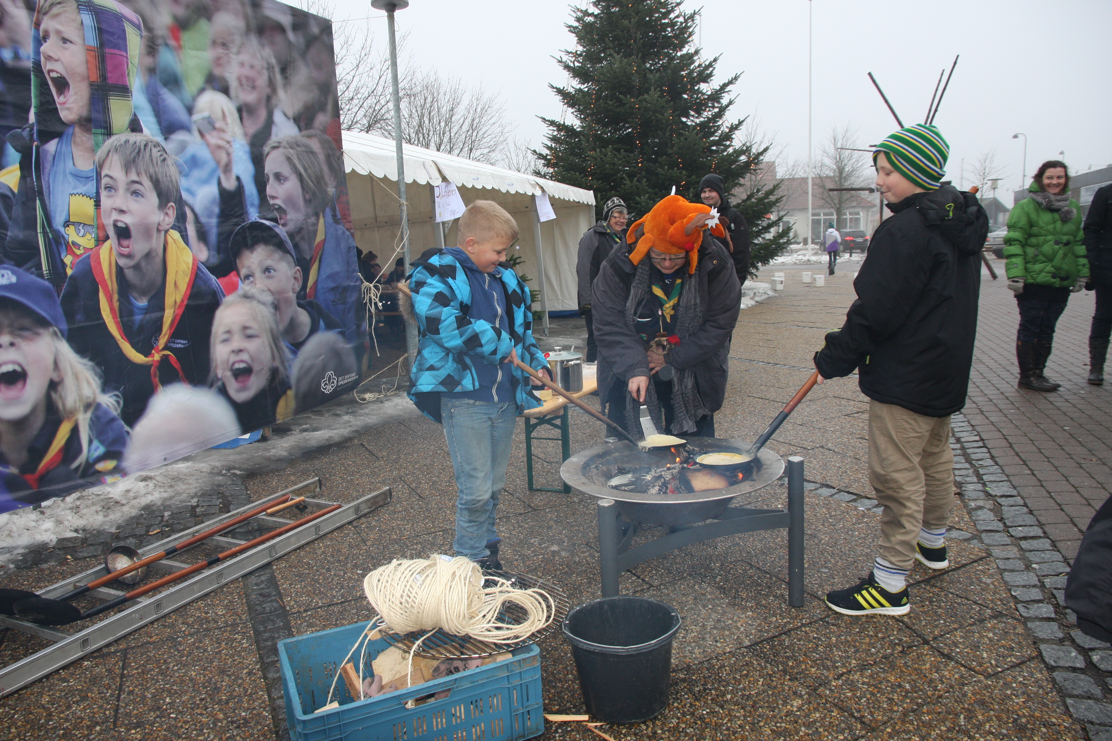 Der blev bagt masser af pandekager over bålet i søndags, da spejderne i Galten inviterede børn og voksne på julemarked.