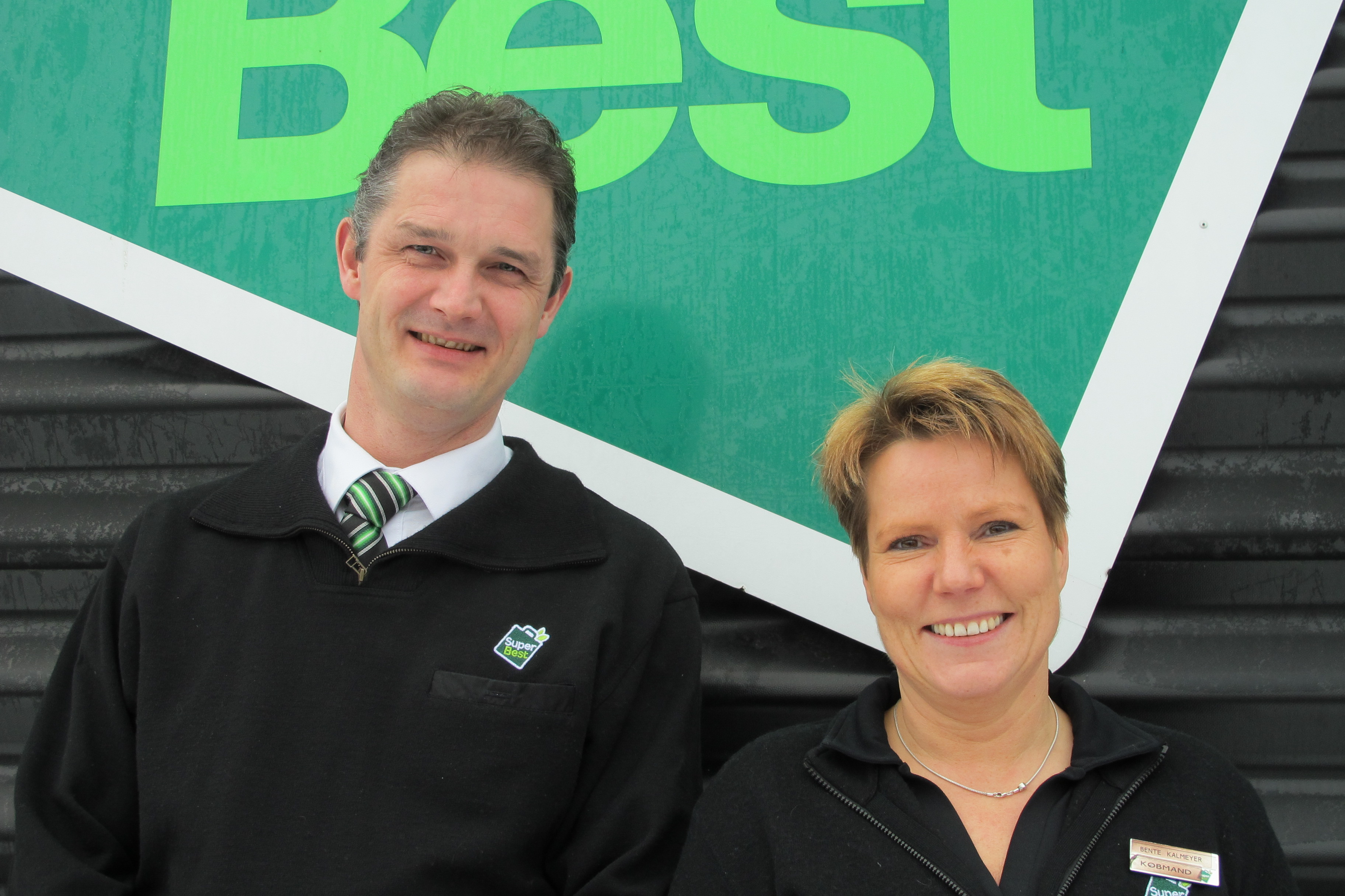 Henrik Clausen og Bente Kalmeyer, købmænd i henholdsvis SuperBest Harlev og Låsby, glæder sig til fra foråret 2013 at overgå til Eurospar-kæden.
