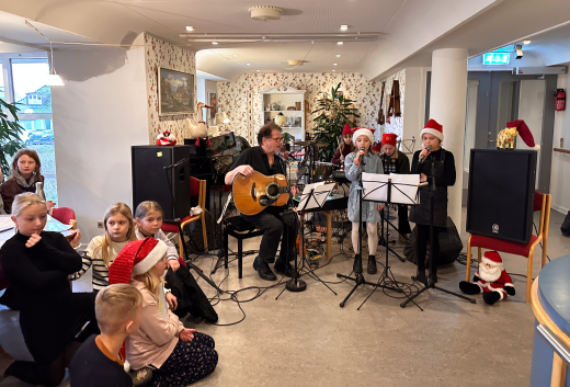 Sædvanen tro var fritidsklubben ved Skovby Mosegård igen i år inviteret til plejecenter Tjørne-haven i Galten, for at spille og synge julesange for beboerne.
