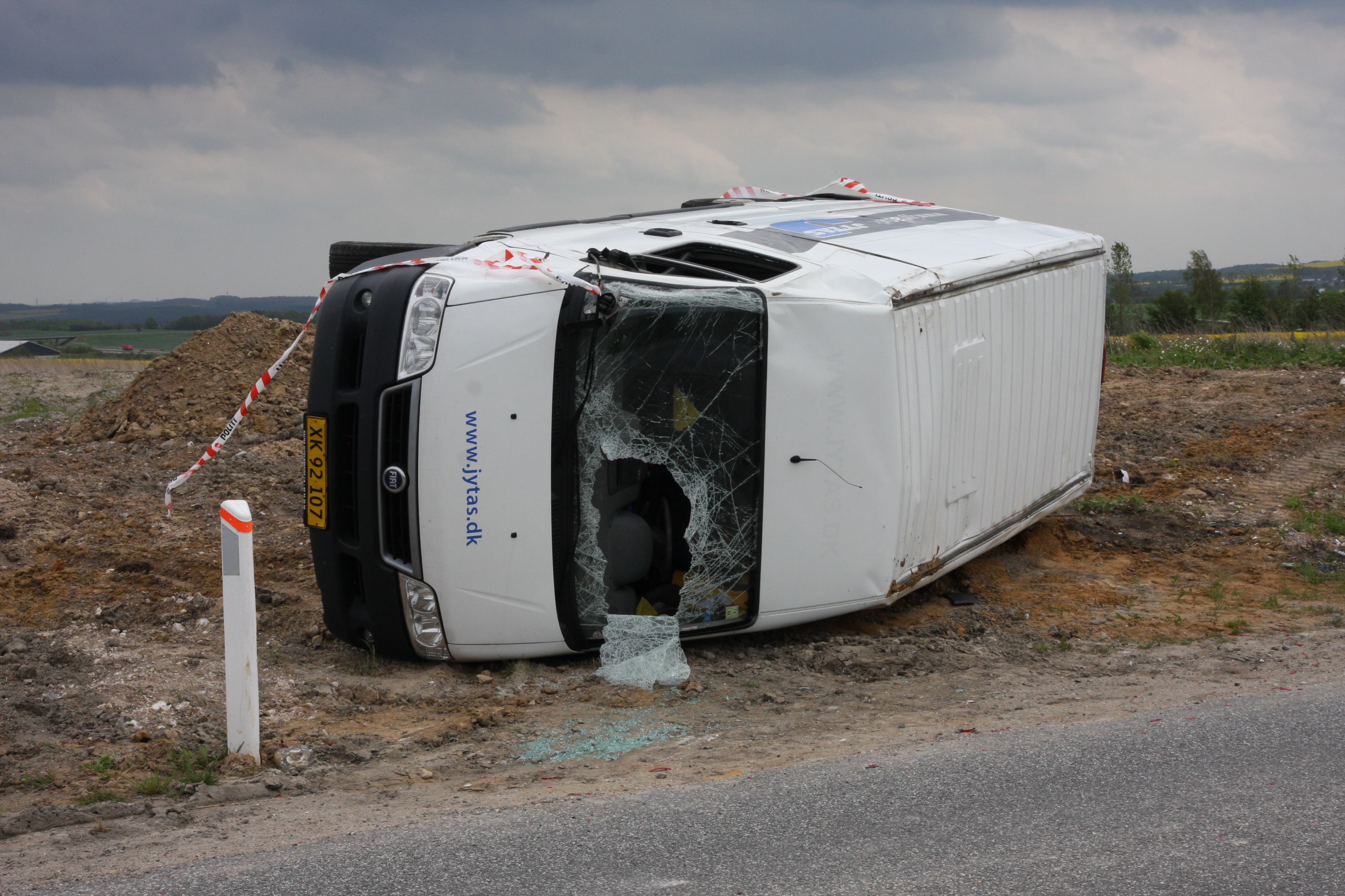 En varevogn, ført af en 51-årig mand, væltede mandag kl. 11.07 om på siden nær OK-tanken på Klank.