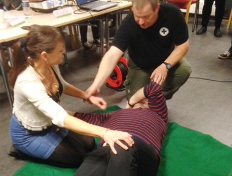 Et glimt fra undervisningen af de 16 frivillige førstehjælpere.