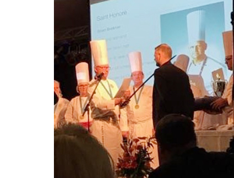 Foran 400 personer ved 'Årets kage'-konkurrencen fik Brian Brøckner overrakt Saint Honoré-æresordenen.