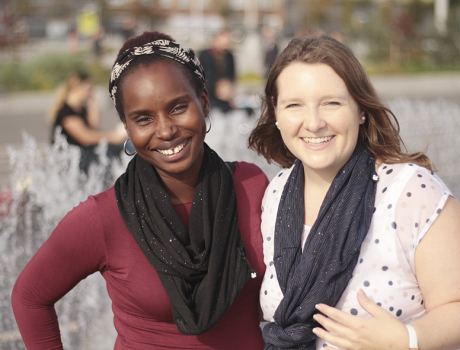 Amanda Rosser (t.h.) iklædt et af de tørklæder hun nu forhandler via sin nyetablerede hjemmeside funcstyle.dk