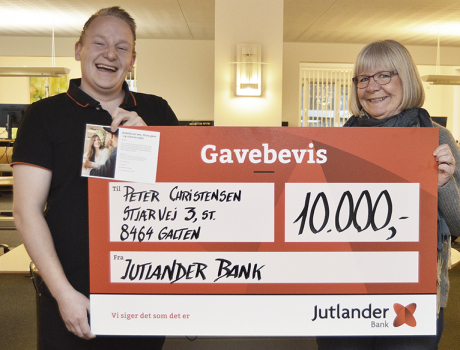 Sådan fortalte Peter Christensen fra Galten, da han forleden var på besøg i Jutlander Bank for at hente sin gevinst: Et rejsegavekort på 10.000 kroner.