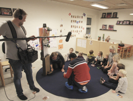 TV-holdet er her i gang med at lave optagelser af Børnehuset Bakketoppens bestræbelser på at give børnene en øget miljø-bevidsthed.