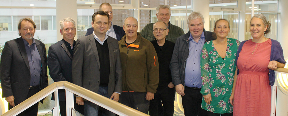 Repræsentanter for forligspartierne: Fra venstre ses: Jørgen Naut (S), Martin Frausing Poulsen (DF), Frands Fischer (S), Anders Laugesen (V), Jens Szabo (V), Tage Nielsen (Rad.), Claus Leick (SF), Finn Sander Jensen (S), Mira Issa Bloch (Alt.), Maria Temponeras (Enh.L.). Thomas Cordtz (Kons) var ikke tilstede.