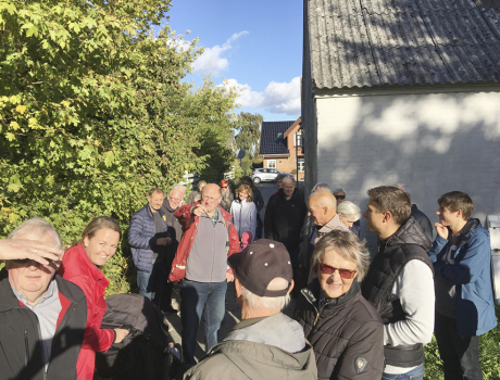 Rundvisning i de små smøger i efterårssolen. På vejen gennem Harlev blev der gjort stop ved bl.a. det