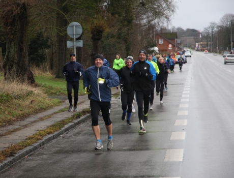 Et lille udsnit af de 350 "champagne-galoppører" på vej i højt humør ad Silkeborgvej. På daværende tidspunkt var første forfrisknings-pitstop passeret.